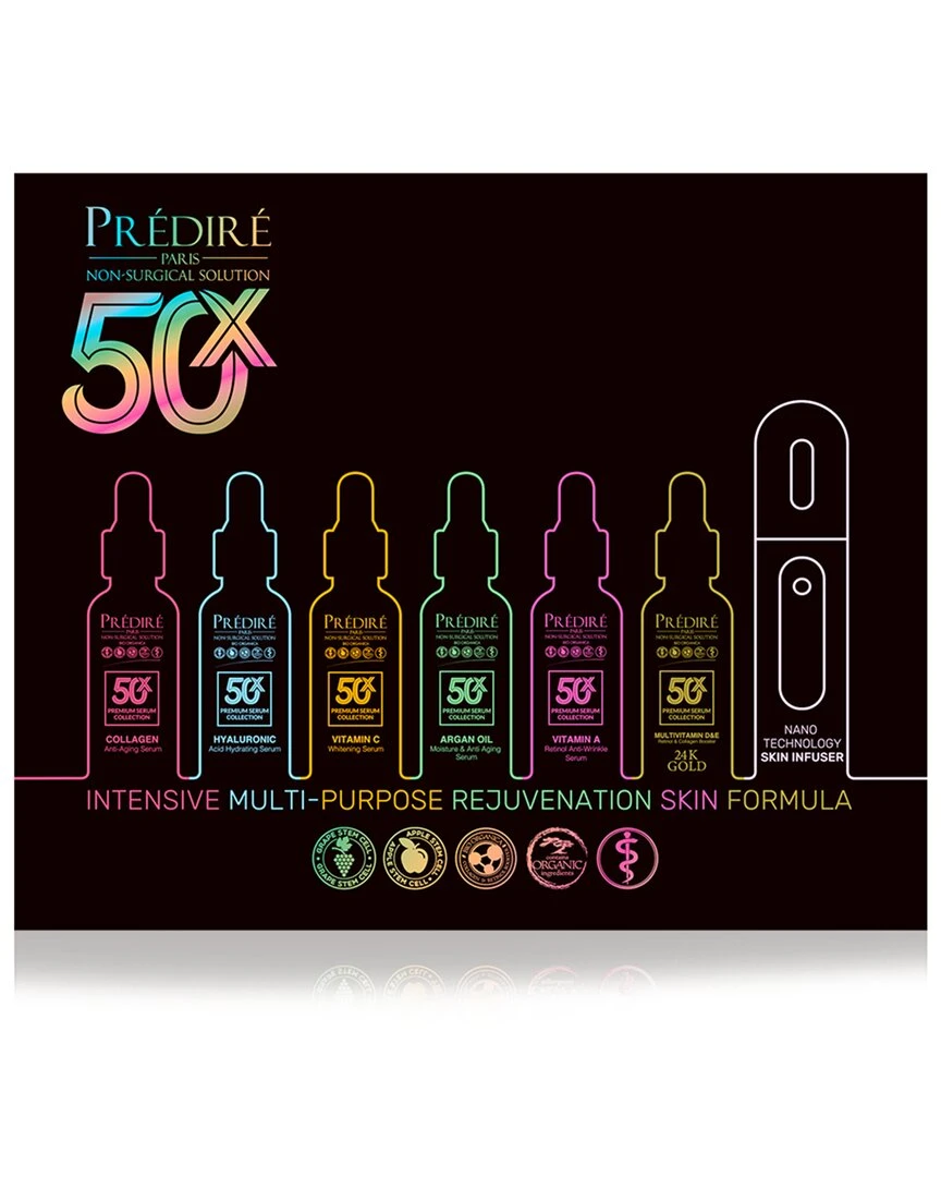 - Predire Paris has created a new way to enhance beautiful skin, 50X Intensive Multi-Purpose Rejuvenation Skin Diffusion Collection, will give a cleaner more natural approach to skincare. Utilizing breakthrough anti-aging formula this collection will assist in restoring moisture, rejuvenating cellular turnover, and encouraging natural collagen production to allow beautiful skin to emerge after essential vitamins and minerals penetrate the skins pores. There are no harsh chemicals, heavy creams, or serums to make your skin feel heavy or irritated. Invigorate your skin with a light freshening mist using the diffuser and miraculous serums will transform your skin!