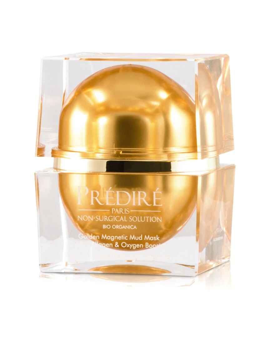 - Our Golden Magnetic Mud Mask with Collagen & Oxygen Booster revives your skin through the power of magnetism. As you run the magnet over your face, the iron powder in the mask is magnetized and lifted, which increases blood flow, boosts oxygen production, and expels impurities. The natural oils in this mask accelerate collagen production for a younger, more radiant looking skin.